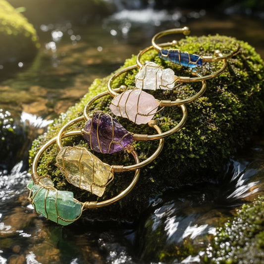 Raw Crystal Wire-Wrapped Cuff Bracelet