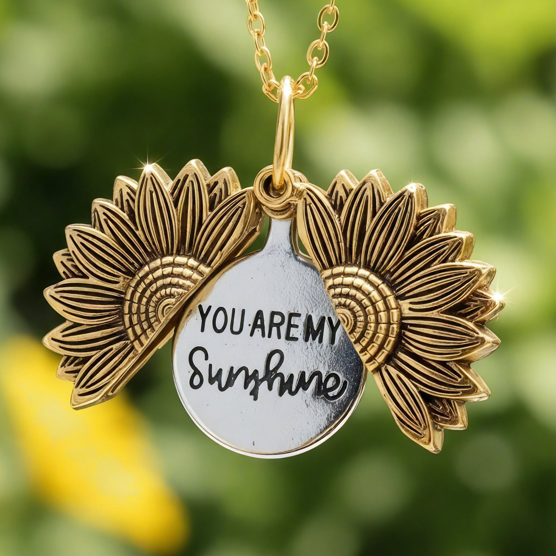 This Forever Sunshine Sunflower Necklace radiates warmth and positivity, capturing the beauty of sunflowers and the heartfelt message “You Are My Sunshine.” With its elegant sunflower locket design, it symbolizes love, light, and connection — making it a meaningful piece for everyday wear or special occasions.
