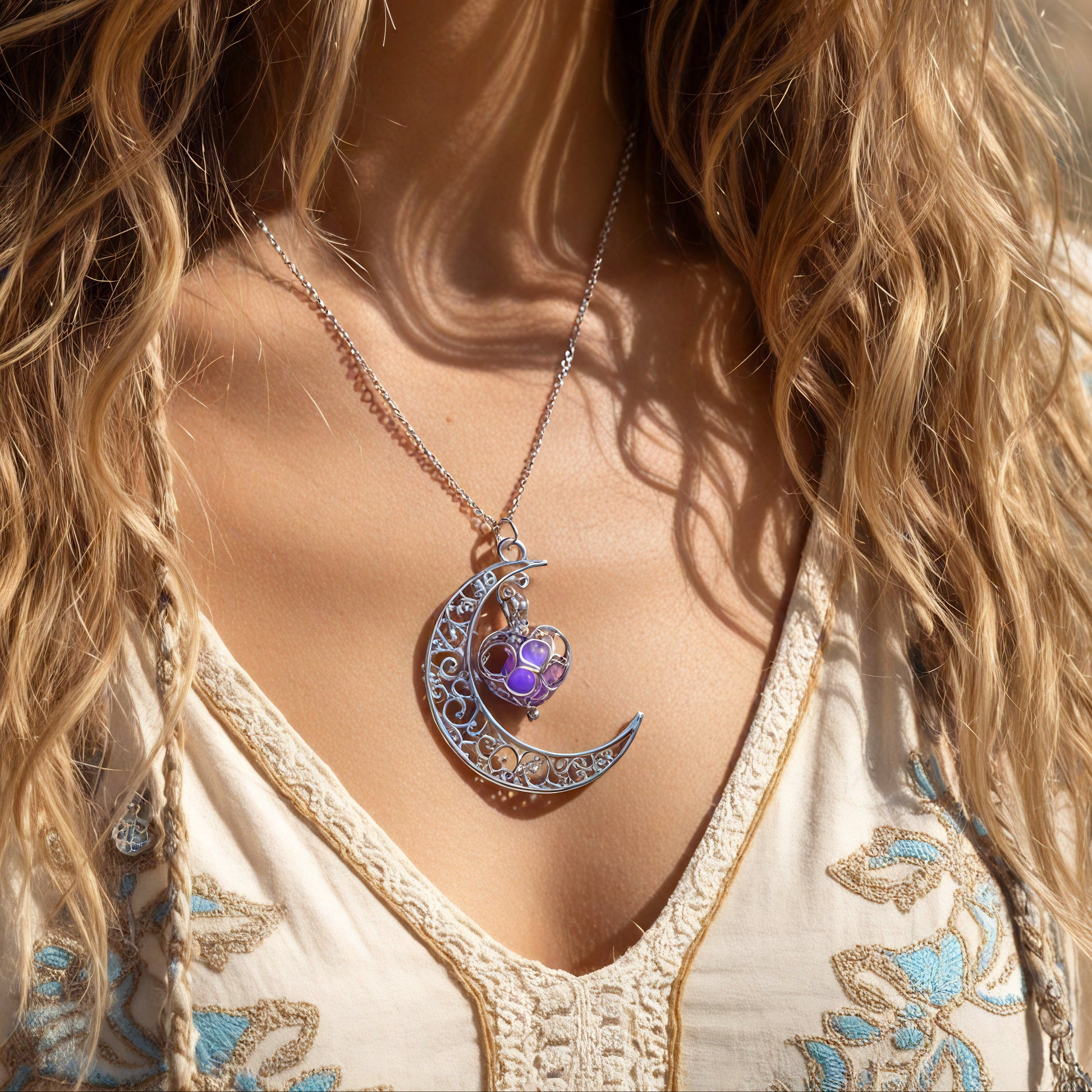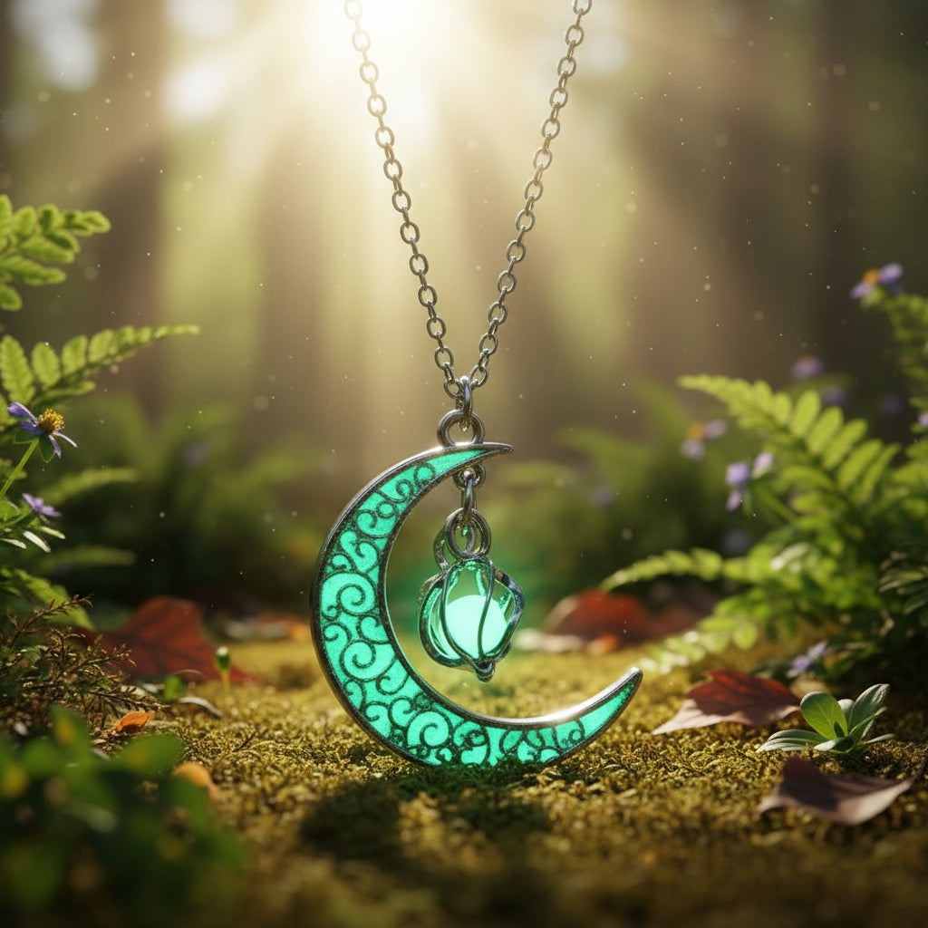 Crafted with luminescent materials, this necklace radiates a soft glow in low-light conditions, making it not only a piece of jewelry but also a magical accessory. The crescent moon design symbolizes dreams, intuition, and inner beauty, making it an ideal gift for someone special or a meaningful piece for yourself.